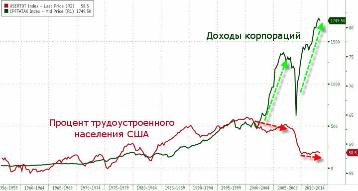 Я согласен с тем, что так называемые количественные смягчения в США не приносят экономике пользы. Бизнес и без них вполне справился бы и через некоторое время возобновил бы своё нормальное развитие. А вот чтобы повлиять на уровень безработицы, нужны более комплексные меры. Заливая экономику дешёвыми деньгами, Федрезерв и правительство США пытается убедить компании, что "жирные" годы вернулись, и что можно взять уволенных бездельников обратно "на работу". Но бизнесу не так просто забыть недавний урок 2008 года, и, кроме того, у него и так всё отлично, и нет смысла снова увеличивать издержки, нанимая ненужную рабочую силу, которая абсолютно никак не увеличит прибыль, а скорее даже уменьшит.